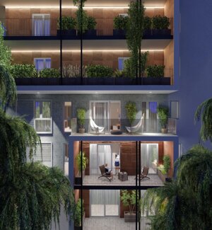 Complessivamente sono previste poco più di 50 unità immobiliari (dal 1° al 7° piano); mentre ai piani interrati sono collocate tutte le cantine ed i box auto.