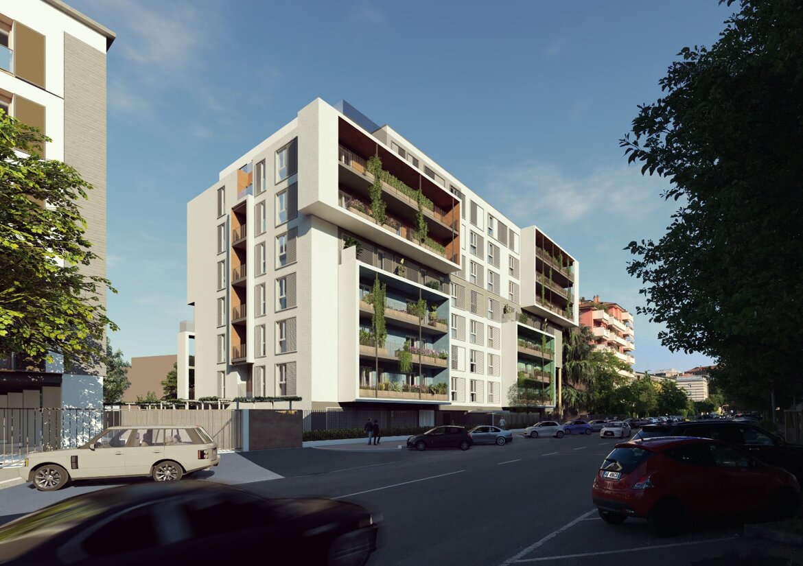 L’intervento edilizio prevede la realizzazione di un fabbricato di 8 piani fuori terra più due piani interrati.