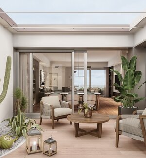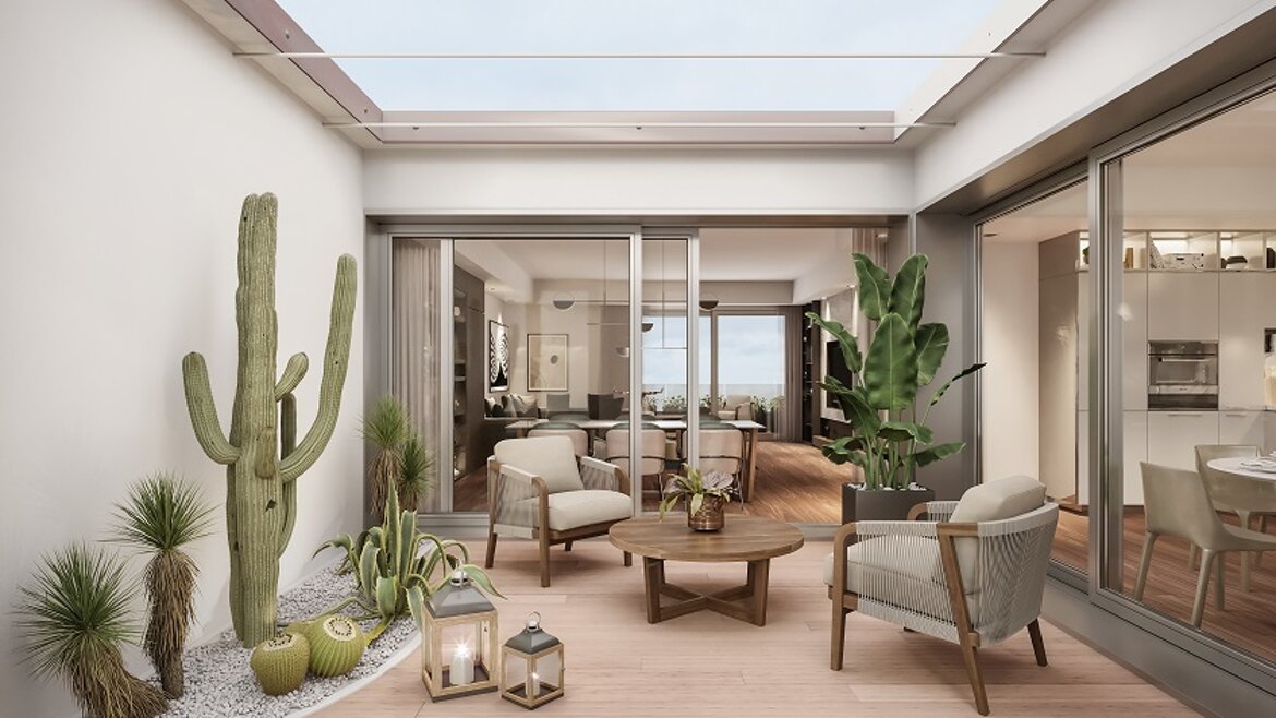 Gli attici hanno disponibilità di grandi terrazzi con pavimento in deck.